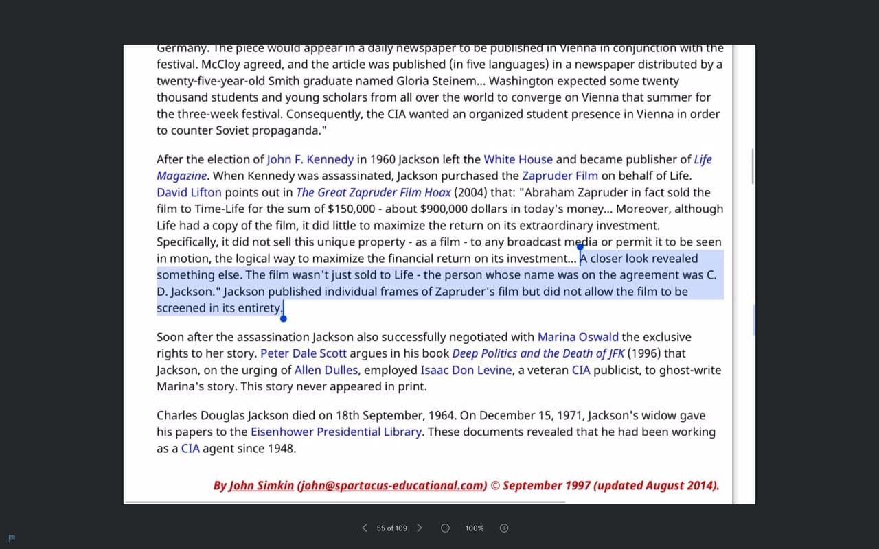 Presidential Library where it was revealed that C.D. Jackson had been working for the C.I.A. since 1948.